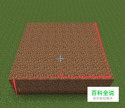 首先用方块堆一个高3格,长宽各10格的实心方阵。