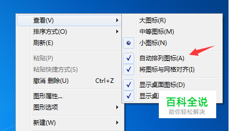 选择查看,可以看到【自动排列图标】已勾选。