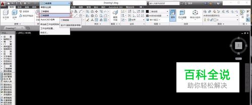 首先,我们点击在CAD页面窗口上方的工作空间选项, 在弹出的菜单中,我们选择三维建模,进入到三维建模页面。