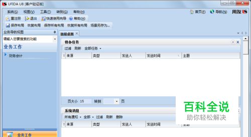 点击“业务工作”选项卡。如图按“财务会计”→“总账”→“凭证”→“查询凭证”的顺序分别双击各菜单。(注意:在双击打开“总账”菜单时,可能会出现提示需要修改系统的日期分隔符,这时需要在Windows系统内修改,具体操作可以参见本系列第98篇经验“设置系统日期分隔符”。)