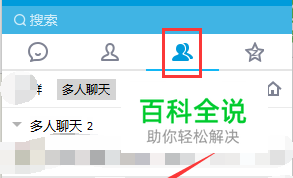 首先启动软件,点击箭头所指的“群聊”按钮,进入相应功能界面。该界面可以查看已加入的群及多人对话。