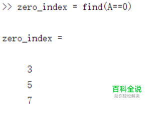 我们首先用find()函数,找到矩阵A中所有为0的元素的下标。 zero_index = find(A==0) 我们得到的zero_index如下图所示。