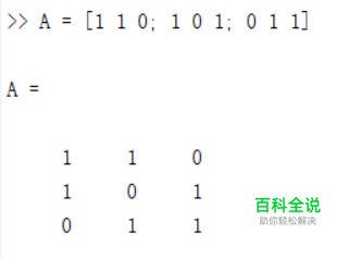 对于如下矩阵A,我们想找到其中为0的元素,然后让这些元素都赋值为3。 A = [1 1 0; 1 0 1; 0 1 1];