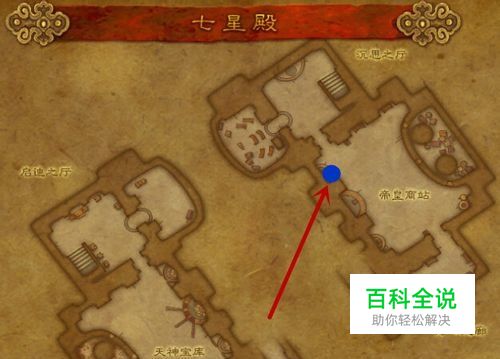 联盟首先到达锦绣谷的七星殿。图中蓝色点位置。