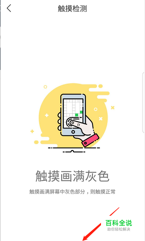第四步,在触摸检测中,需要我们用手指把屏幕的灰色部分填满,填满后会自动进入下一步;