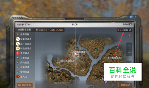 此时会弹出当前角色所在场景的地图,接着需要点击地图右上角的下图箭头所指的这个位置。