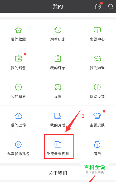 ① 打开爱奇艺视频客户端,进入“我的”>>“免流量看视频”;