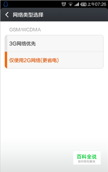 打开手机设置,点“移动网络”——“网络类型选择”,选择使用2G网络。