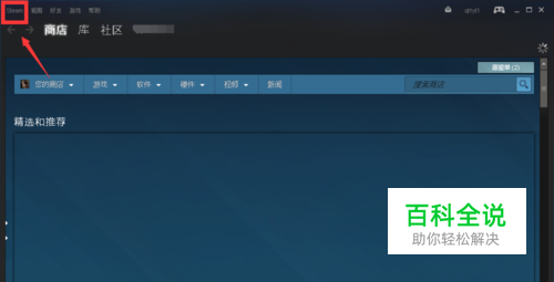 登陆成功,点击左上角steam,如下图所示