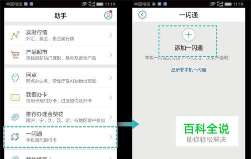 小编以招商银行的借记卡的APP招商银行为例。 下载并打开招商银行APP,点击【助手】>【一闪通】>【添加一闪通】。
