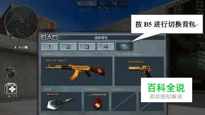 在普通模式中,只有在开局,或者死亡复活之后,主武器,副武器,手雷都没有使用的状态下,才能更换背包。这时候,只要按按键B,想要哪个背包的武器直接点,或者按一下背包数,如图,五背包的就是按B5,就可以选择背包了。
