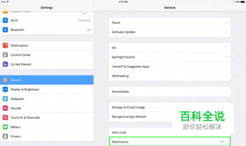 1、打开设置应用程序。 2、点击常规,然后点击限制。