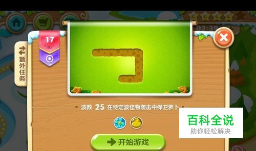 保卫萝卜2有道具产生,游戏中获得。绿色的为全屏减速、白色雪花为全屏冰冻、火球为急速攻击。其他道具30级后产生吧,期待中。。。。 小编从第一关开始玩发现之前的闯关比较简单,大boss那关大家在前面要多造炮塔,大怪血超级厚,但是打它有钱,所以要多多升级,那么小编发现17关了完美通关不是那么容易了; 此关为小编 第17关的完美通关过程。