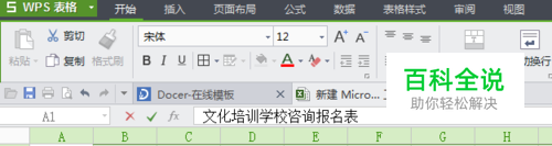 打开Microsoft办公软件,设置表格标题,如下图所示,我要输入的“培训学校咨询报名表”。在下图所示的框框里输入“培训学校咨询报名表”,然后回车。