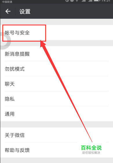 切换到设置界面如下图所示,点击第一个帐号与安全进去