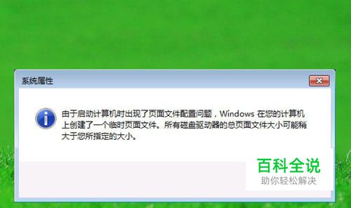 有网友出现一个电脑问题,开机就出现一个提示框,提示由于页面文件配置问题,系统会临时性地创建一个页面(即虚拟内存)文件,其大意就是这样,询问如何解决。
