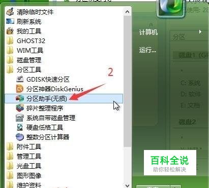 2、点击开始菜单,打开分区工具文件夹内的“分区助手”。如下图所示:
