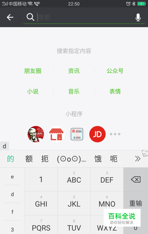 第三步,点击搜索框之后,就会弹出一个搜索框,在这个搜索框里面输入肯德基即可。就会弹出肯德基的应用。