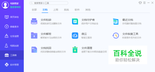 打开电脑管家,找到工具箱,在工具箱中找到“文件恢复工具”,点击它!