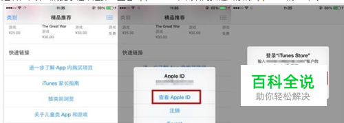 首先在你的iOS设备上,打开自带的App Store这个应用,在精品推荐的页面底部,找到你的【Apple ID】,点选后,在弹出的提示框中选择【查看Apple ID】,而后需要输入你的Apple ID的【密码】。
