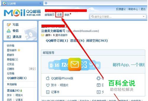 在QQ邮箱网页里点击“设置” 如图