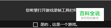 首先可以使用组合键win+G调出我们要打开的录屏软件,调出后如下图显示 我们用鼠标点击“是的,这是一个游戏