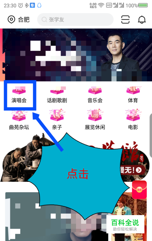 选择好要买票的城市后,在打开的界面,点击演唱会选项,查看演唱会信息。如图所示