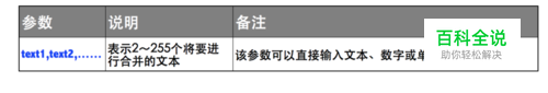 参数说明: text1,text2,......:表示2~255个将要进行合并的文本。