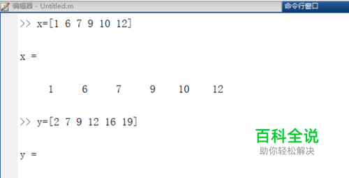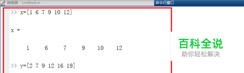 第一步打开matlab,在命令行窗口中输入“ x=[1 6 7 9 10 12] y=[2 7 9 12 16 19] ”创建离散点数据,需要注意x,y长度一致,如下图所示: