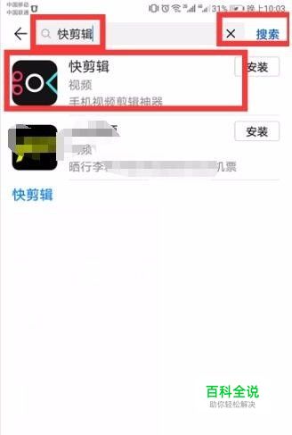 在应用市场的搜索栏中输入“快剪辑”,点击“搜索”按钮,进行软件的下载和安装