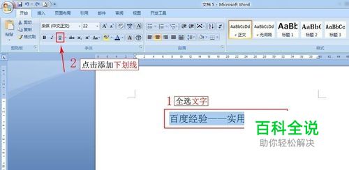 全选 文字,点击添加 下划线。