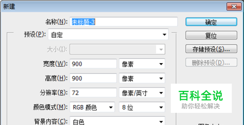 如图所示,先用Photoshop新建一个空白的画布