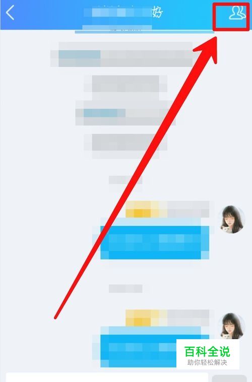 在群聊的聊天界面,我们点击右上角箭头所指的头像进入群资料页面。