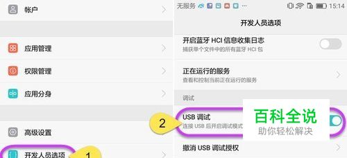 在安卓手机中打开USB调试模式。