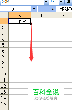 回车之后,出现一个数,按住右下角的黑方块,向下拉。
