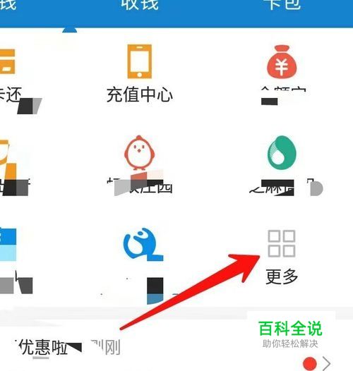 在更多设置页面中,点击如图所示位置中箭头所指的位置,选择蚂蚁森林即可,也可以通过搜索找到。