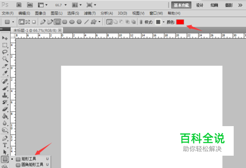 矩形工具选取,调整颜色为红色,然后按住shift键,拉出一个正方形来