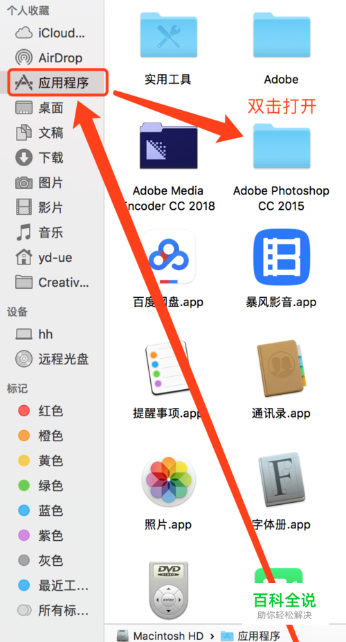 找到PS软件,Finder--应用程序--PS软件。