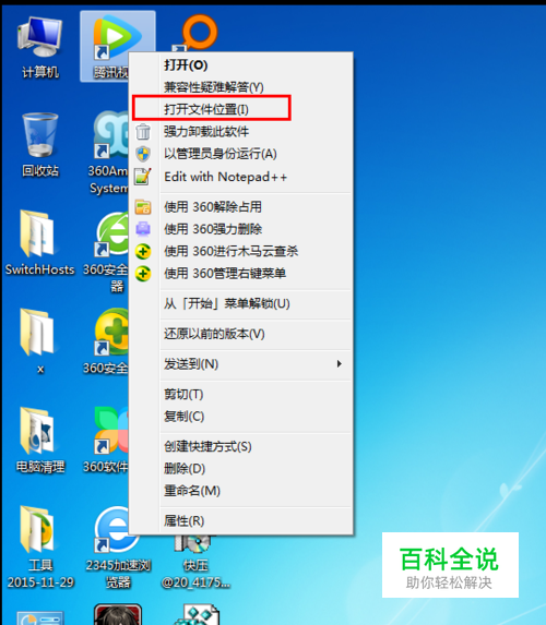 找到桌面的腾讯视频快捷方式,右键,找到“打开文件位置”;