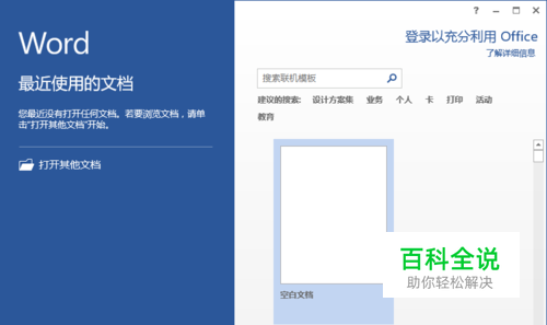 一、在电脑桌面的Word2013文档程序图标上双击鼠标左键,将其打开运行。点击“空白文档”选项,新建一个空白文档。如图所示;