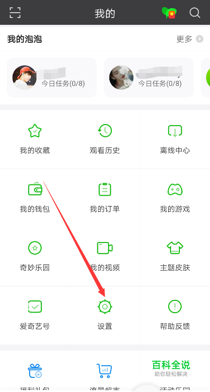 进入爱奇艺我的界面后,在找到【设置】图标,如下图所示。