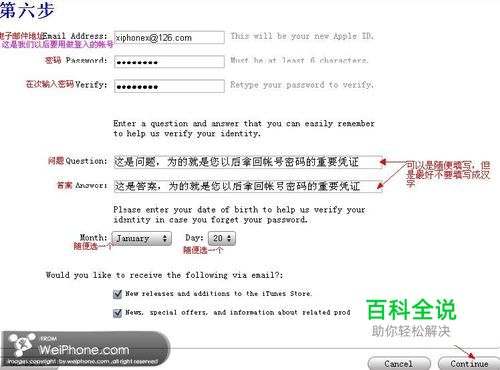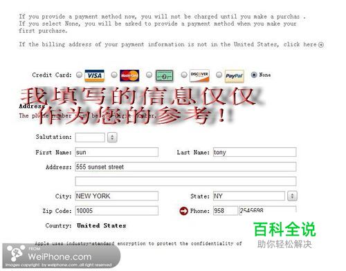 注册界面其实也很简单, 第一个是注册协议,大家应该都知道,是否已经阅读协议那打钩,以后下一步(continue). 第二个是填写你即将使用的ID和密码,注意,这个ID就是一个E-MAIL,而且你必须填写一个你正在使用的真实E-MIAL,最后在确认你的帐号真实性的时候要使用这个邮箱的!!!问题和答案用英文填写,最好也要记住,以后可以找回密码什么的!以后下一步(continue). 第三个就是填写你的个人信息了!大家注意了,CREDIT CARD (信用卡)选项是不是已经可以选择 None 了??!!爽把!!其他的个人信息这样填写: 1 选None(支付方式)。 2 SALUTATION可以空着 3 First Name Last Name 这个随便填了,注意用英文!! 4 Address (地址) 地址是任意数字空格后加任意英文字母 5 City (城市)填 NEW YORK (大写) State (州)选择 NY就行了 !!! 6 Zip Code (邮编) 填写1000X,X为任意数字 Phone (电话)注意前面的空格里面填写3位数字,后面的空格里面填写7为数字,都是任意数字 继续以后就会跳出一个页面,大概的意思就是已经发了一封E-MAIL到你注册时候使用的邮箱,点击 Done。