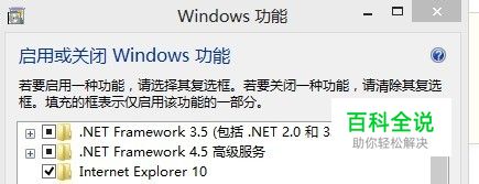 把Internet Explorer10前面的勾去掉,然后重启电脑,然后再勾选Internet Explorer10前面的勾