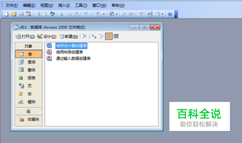 接着弹出文件新建数据库对话框,选择合适的位置后点击创建按钮,接着弹出数据库对话框。