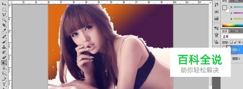 开始工作,使用橡皮擦工具【E】,将美女周边檫一遍