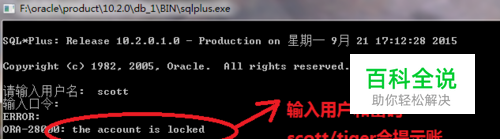 进入新窗口后使用scott/tiger用户和密码进行登录会发现登录不成功:如图