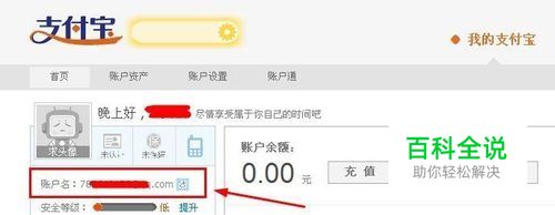接下来会自动进入到支付宝页面,我们在支付宝的logo下面会看到一个账户名的字样。就是红框框里面的。这个就是大家支付宝的登录名啦!
