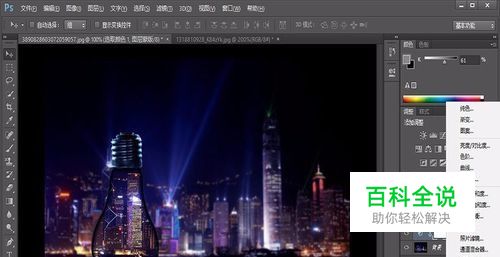 把灯泡的下部分用“快速选择工具”选中,快捷键“W”,用移动工具拖进城市夜景图中,按“ctrl+T“键调整大小。
