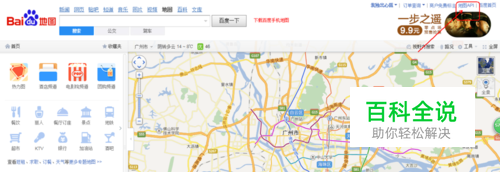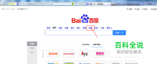 首先打开IE,打开百度,选择里面的地图,如下图所示: