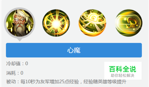 首先是姜子牙的被动技能(详见下方图片内)为每10秒为友军增加25点经验,经验随英雄等级提升
